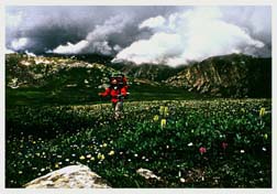 | Hiking on the Continental Divide. Nebo Pass overlooks the Grenadiers to the west and from that point all you can see is the wilderness. No roads, nothing manmade. It is truly spectacular. Photo of husband, Mike, by Donna Ikenberry. Prints are available by contacting the photographer at dikenberry@amigo.net |